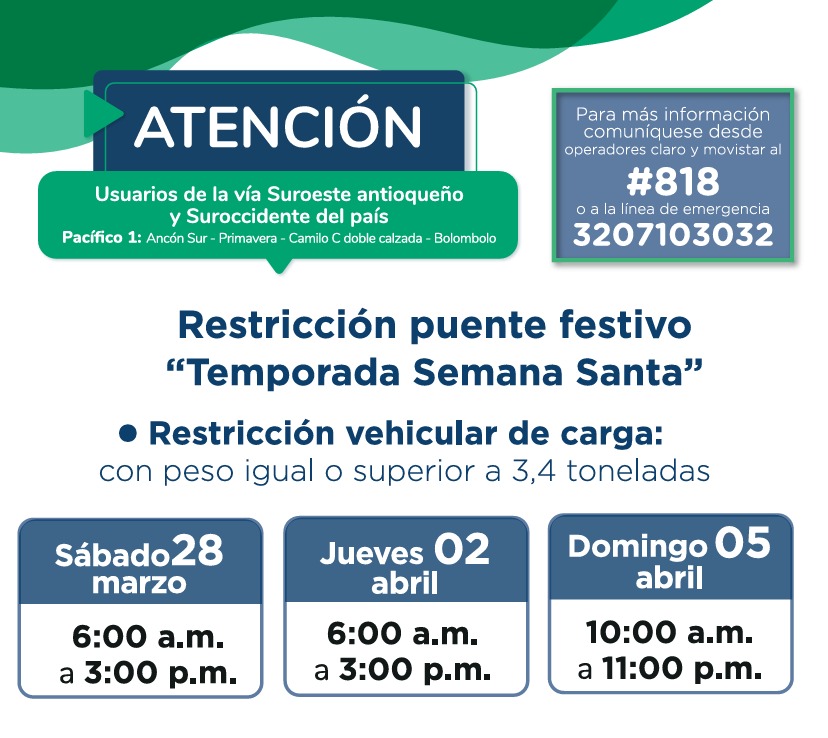 Durante Semana Santa, el corredor Pacífico 1, una ruta clave de conexión hacia el Suroccidente del país, registra uno de los mayores flujos vehiculares del año.